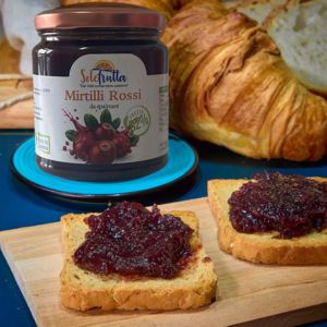 Il sapore intenso dei mirtilli rossi si sprigiona in questa confettura perfetta per chi cerca un piacere sano e dolce.