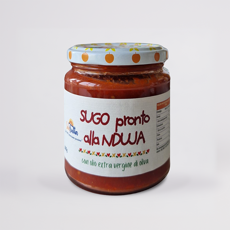 Sugo pronto alla Nduja Solefrutta: pomodori pelati e nduja calabrese per un gusto intenso e deciso. Perfetto per chi ama i sapori forti.